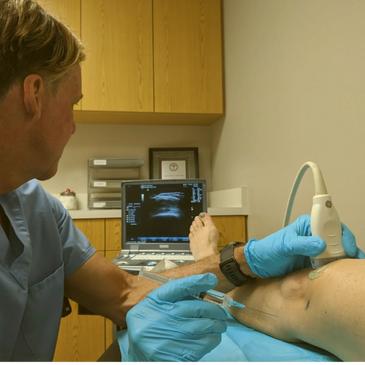 Dr. Scott completes many of his injections in the office using ultrasound technology to guide the needle tip to the proper location in the tissues or injected joints. Ultrasound allows for increased accuracy and increased safety with any injection procedure and is especially helpful when the procedure requires a high degree of precision.